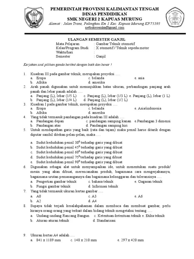 Soal akm gambar teknik otomotif kelas 10 semester ganjil dan semester genap.