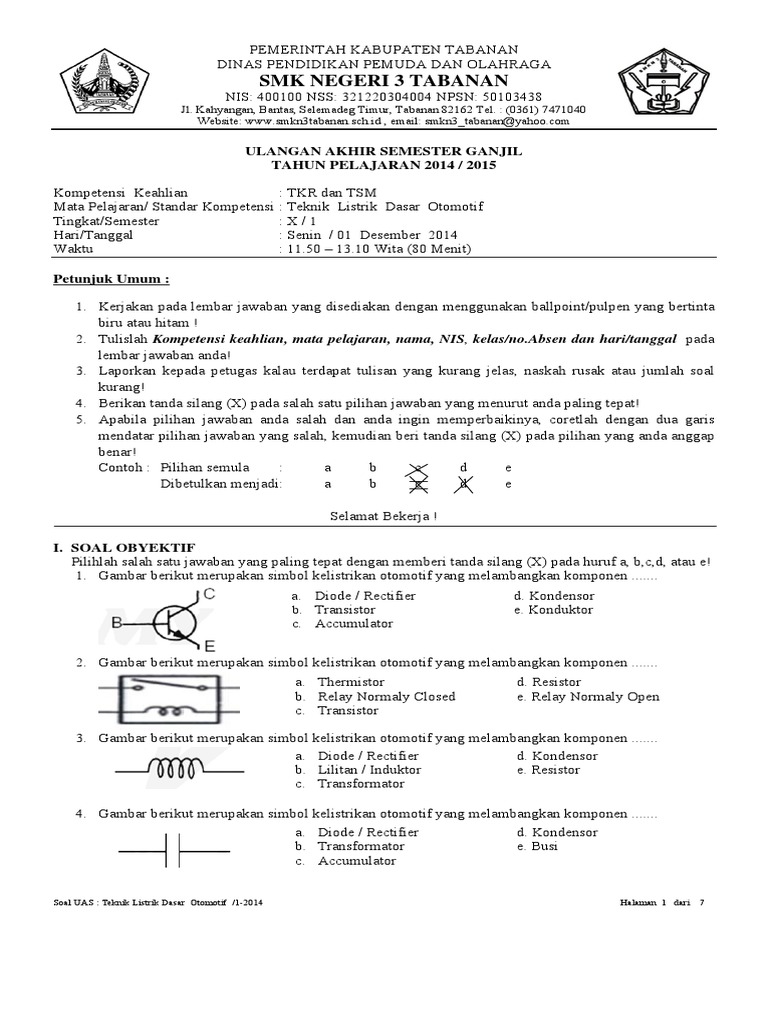 Hari / tanggal ujian : 20210315 download soal uhph tema 7 dan 8 kelas 2 sdmi semester 2 k13 2017 th. Soal tdo ini terdiri dari soal kesehatan keselamatan kerja (k3), klasifikasi engine, cara kerja engine 2 dan 4 langkah, pembentukan dasar logam, dasar hidrolik, dasar pneumatik, dasar kelistrikan, dasar elektronika, dan baterai. Pada kesempatan kali ini admin telah membagikan latihan soal pekerjaan dasar otomotif semester 2 … contoh soal gambar teknik kelas x. Pemeliharaan kelistrikan kendaraan ringan kelas xi semester 12 8.